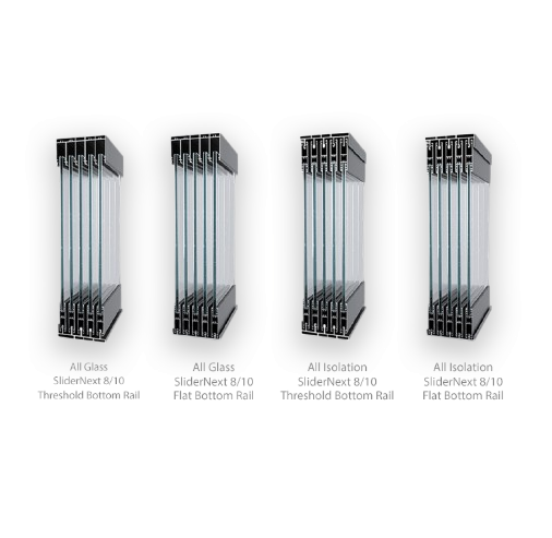 - Innovative multi-rail system accommodating up to 10 sliding glass panels