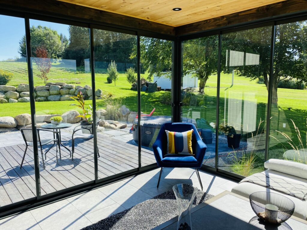 The newly designed side panel profile, ideal for L-shaped and U-shaped spaces, allows for an elegant panoramic view without the need for corner profiles.