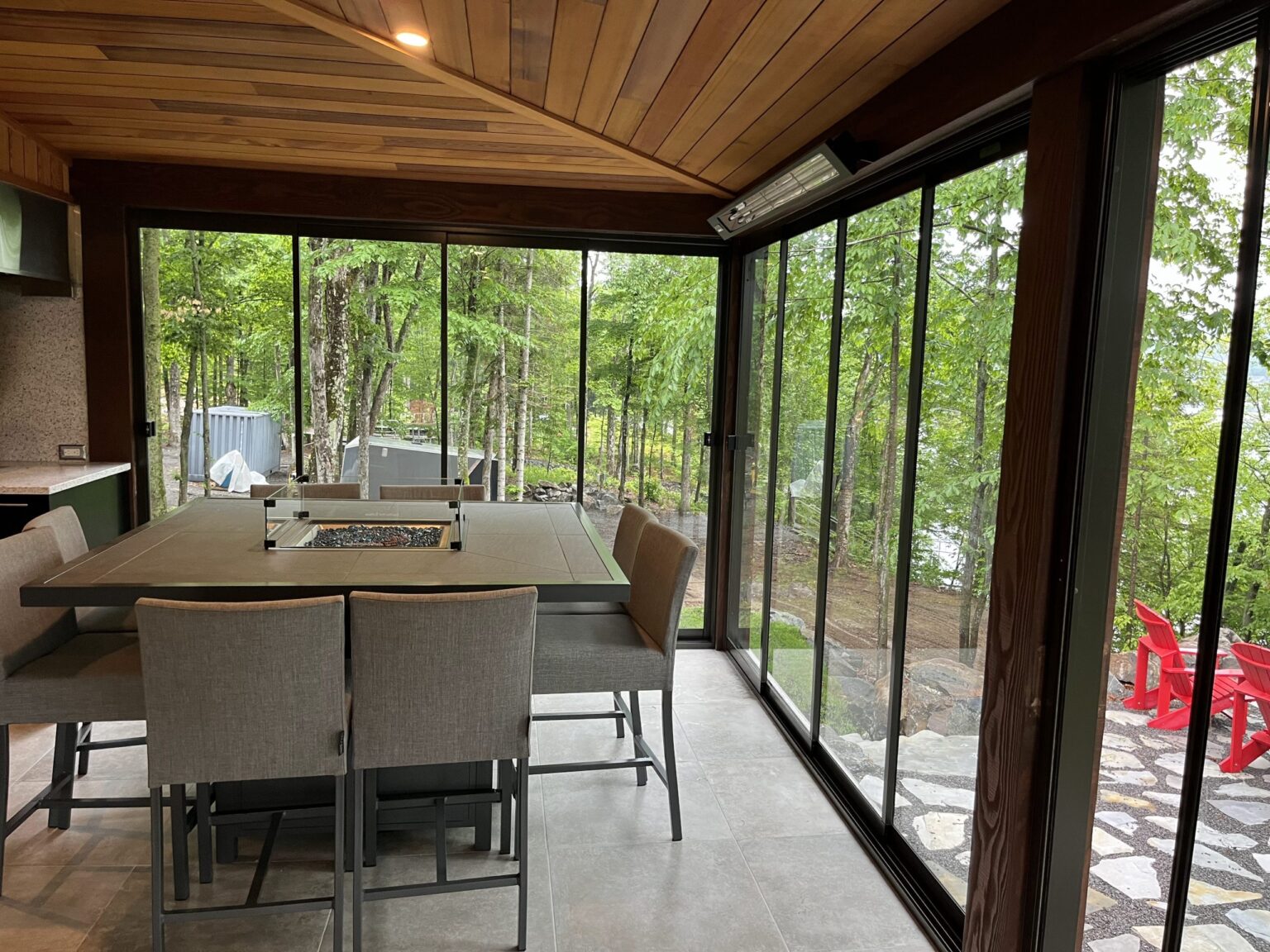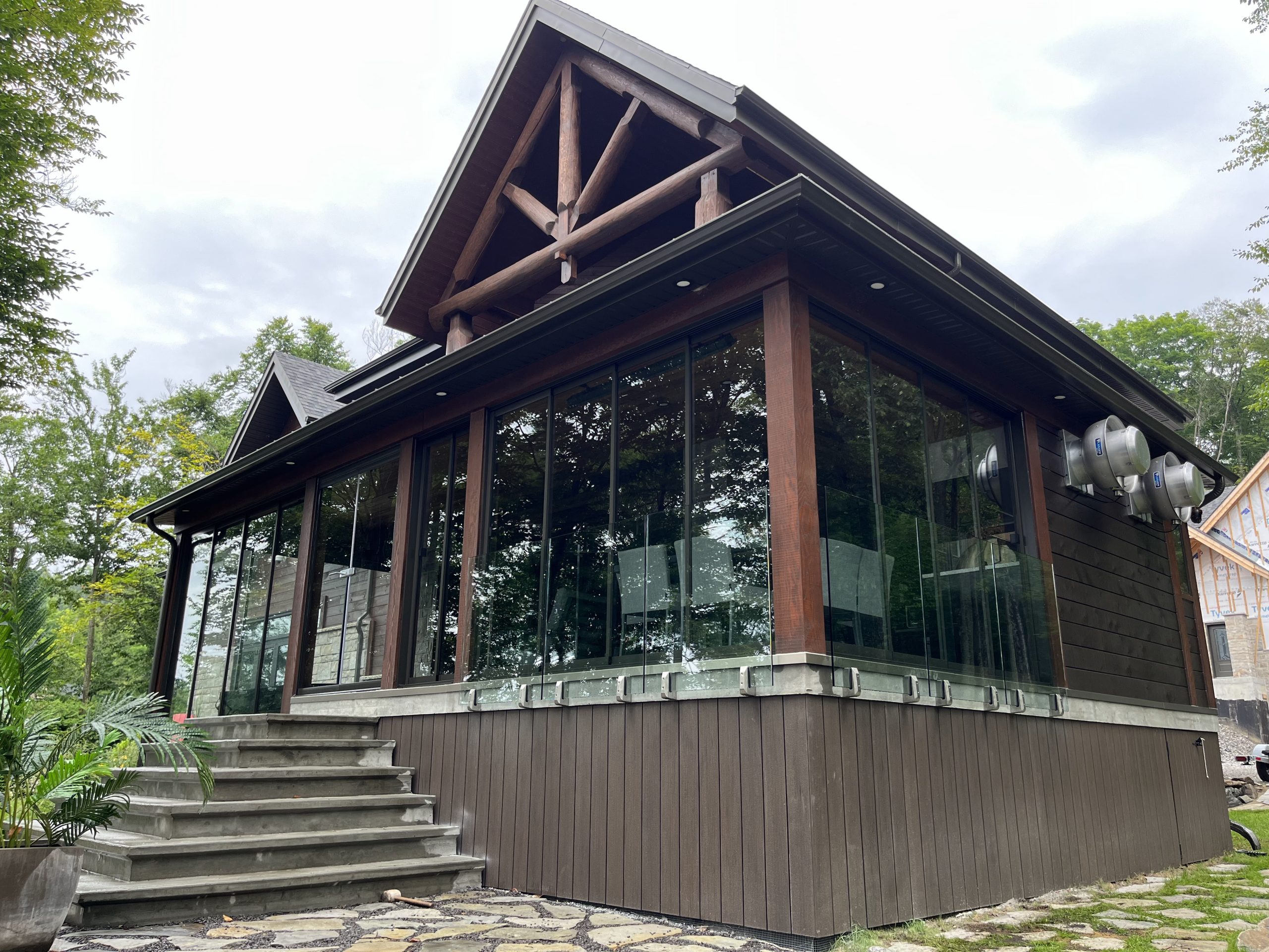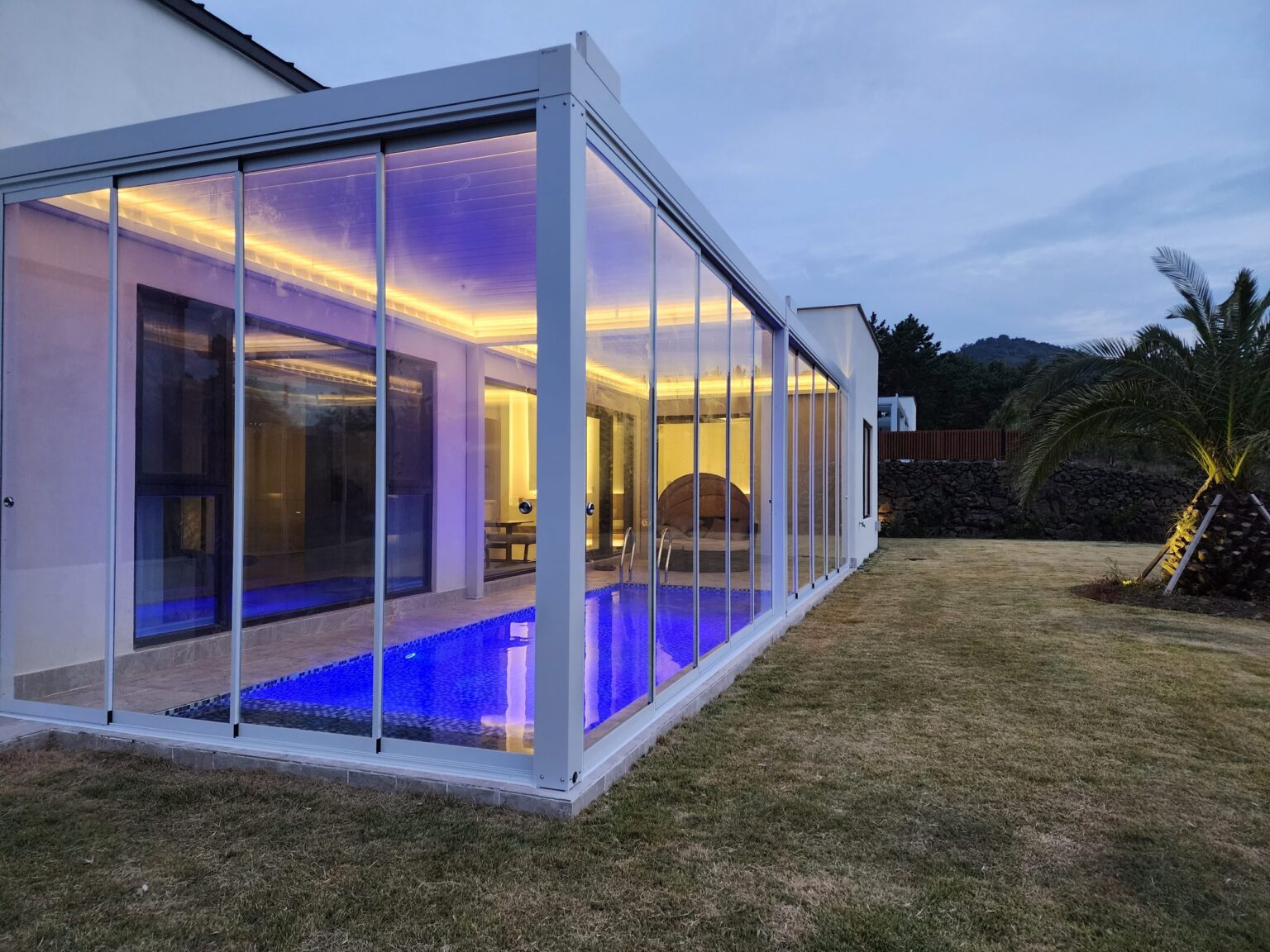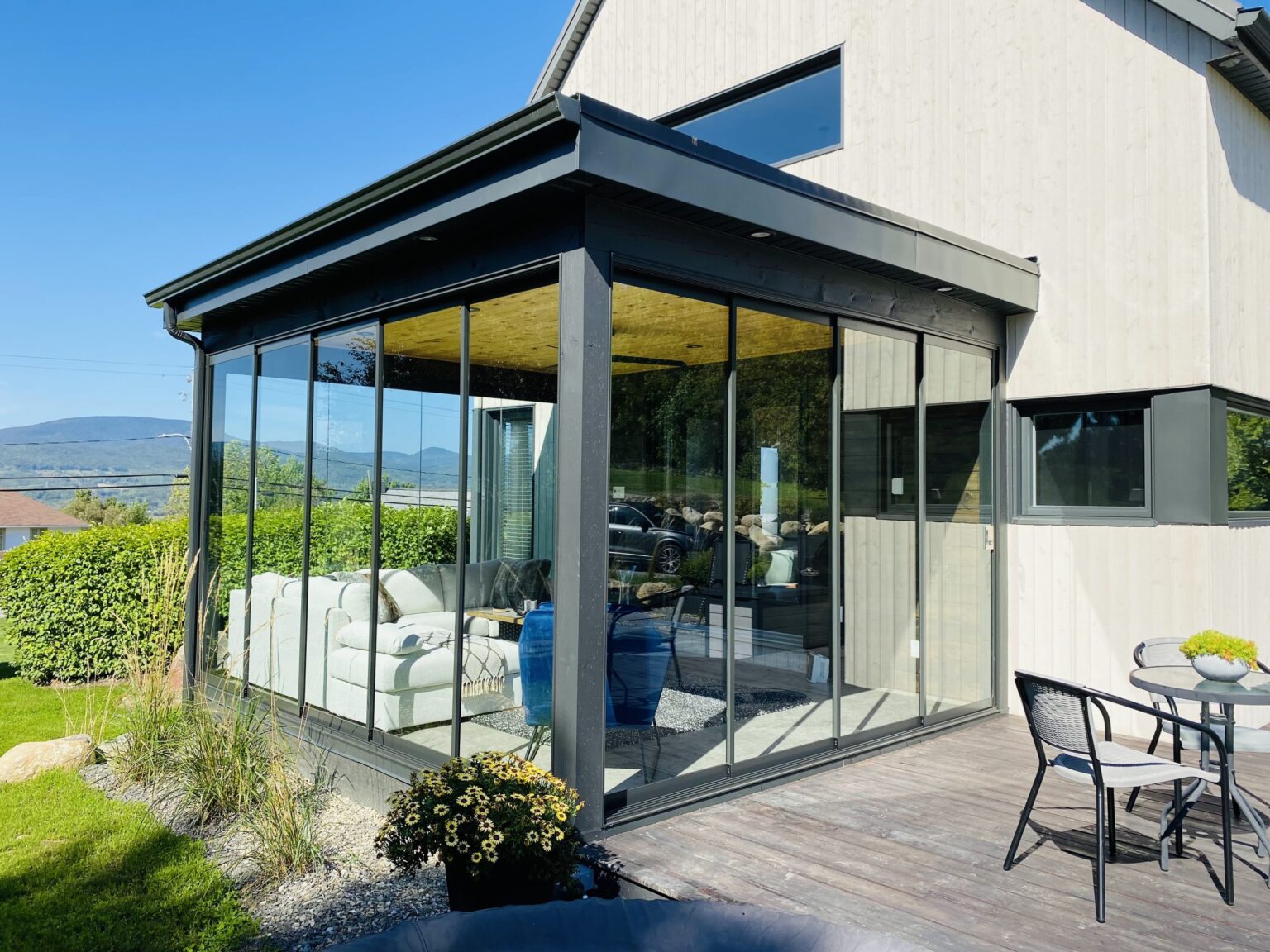 The newly designed side panel profile, ideal for L-shaped and U-shaped spaces, allows for an elegant panoramic view without the need for corner profiles.