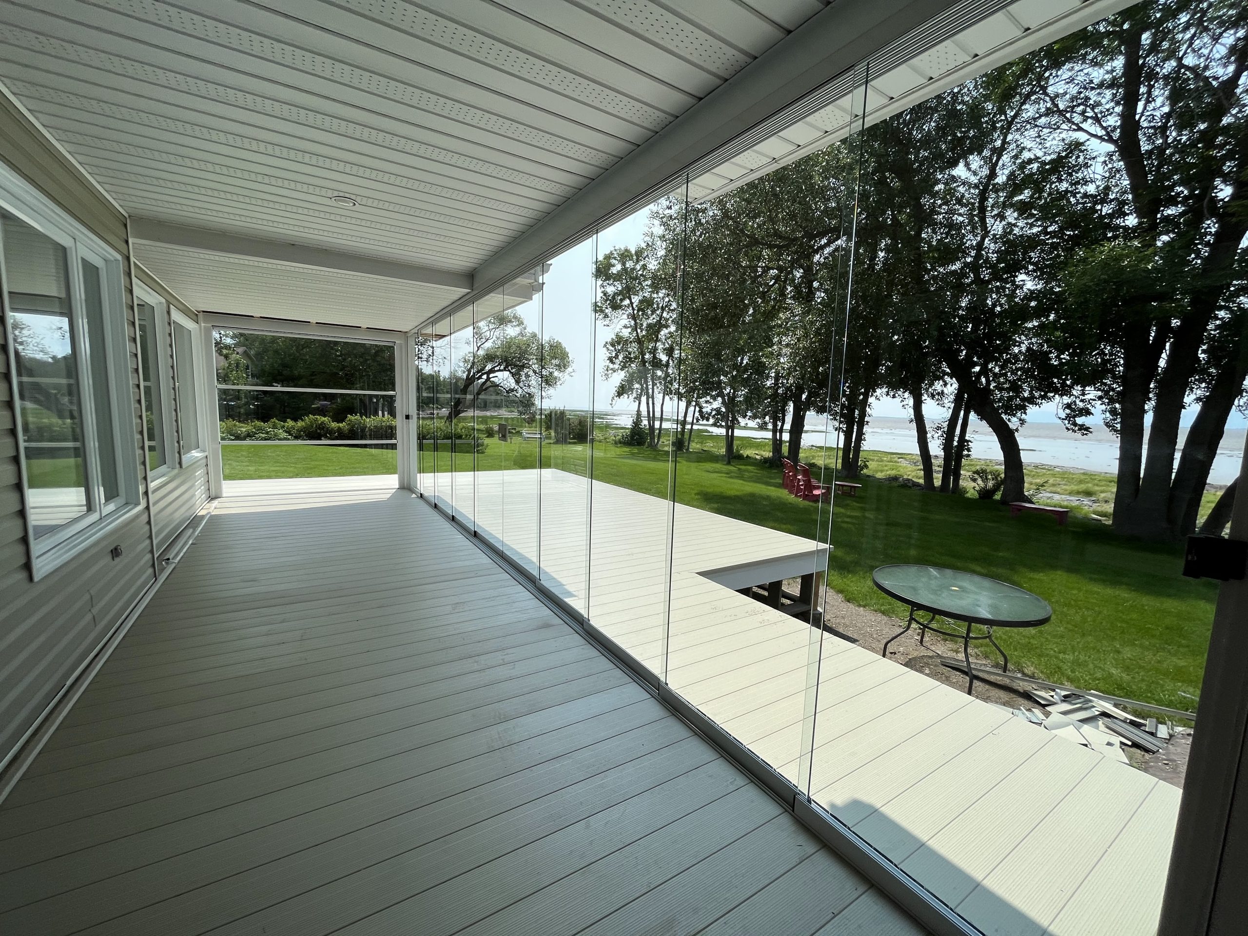 VERTIGO is an innovative vertical motorized window system that allows you to effortlessly adjust your glass panels with the push of a button. The panels smoothly slide down and stack at the bottom, forming a stylish and space-saving railing.